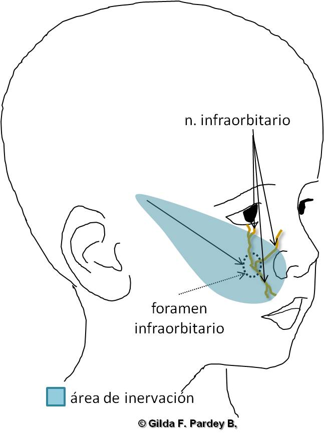 Figura 1: Territorio de inervación del nervio infraorbitario.
